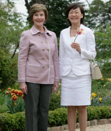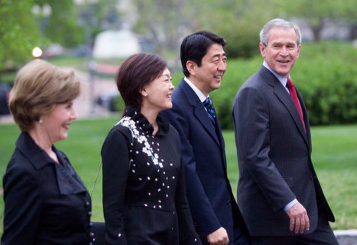 安倍晋三さんが総理大臣になった直後から韓国や中国を訪問し、ファーストレディー外交を展開していたほか、アメリカのブッシュ大統領夫妻とも親交を深めていました。