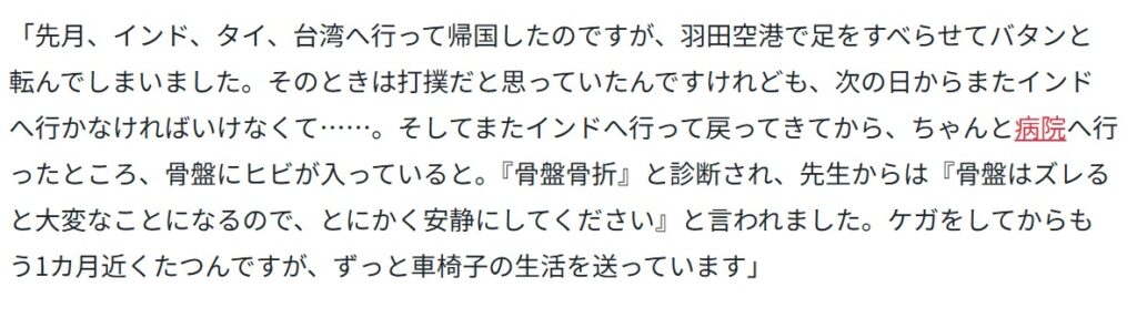 しかし、直近の安倍昭恵さんの情報を深掘りしていったところ、2025年3月頃に骨盤を骨折していたことが分かりました。