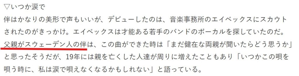 ただ、伴都美子さんは欧州風の顔立ちをしていますから、顔画像を見ただけでハーフだと勘付いたファンも多かったのではないでしょうか。