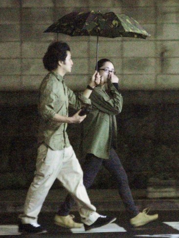 深津絵里さんと相合傘をしている旦那・白山春久さんの姿を確認することができます。