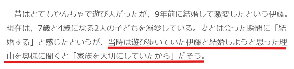嫁と結婚するまでは遊び人だったことをカミングアウトしていた伊藤英明さん。