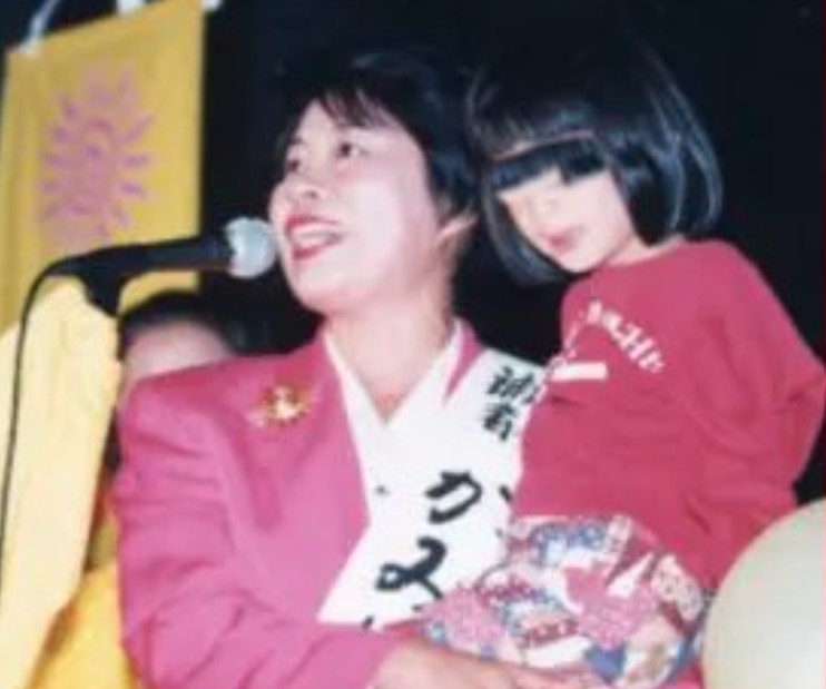 人形を大事そうに抱っこをしている幼少期の上川陽子さんの顔画像がオフィシャルサイトに掲載されていました。