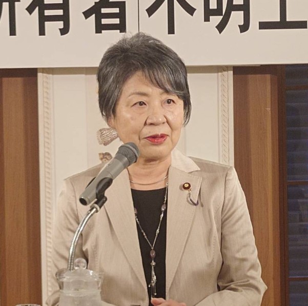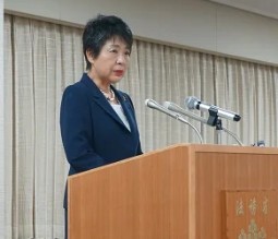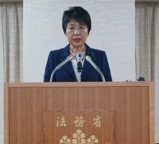 2025年10月19日、「司法外交とおひとりさま問題~司法書士が果たすべき役割~」という講演会に登壇した時の上川陽子さんの顔画像です。