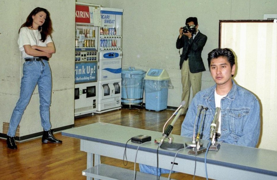 川崎麻世さんが不倫の釈明会見を開いたところ、会見場の真横に妻・カイヤさんが現れ、腕組みをしながら川崎麻世さんを睨みつける、という異様な光景となりました。