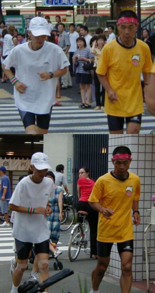 両ひざにテーピングを巻くなど、満身創痍の姿で85kmのマラソンを完走しています。