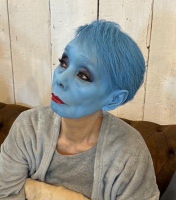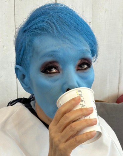 顔だけでなく、髪の毛も青に染める、という衝撃的な姿でCMに登場し、大きな話題を集めていましたよね。