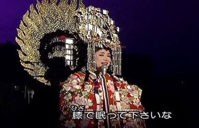 「2000年のかぐや姫」というタイトルの衣装となっていて、赤い着物から緑の着物に入れ替わるだけでなく、歌の終盤になると背景に金色のカーテンが登場する、という豪華な内容になっていましたよね。