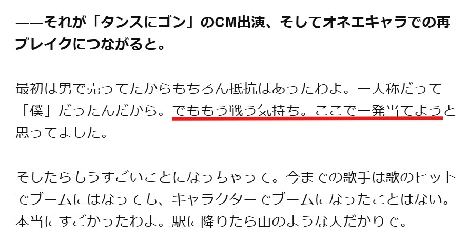 美川憲一さんは44歳の時に「タンスにゴン」のCMに出演したことがきっかけとなって、オネエキャラを演じるようになりました。