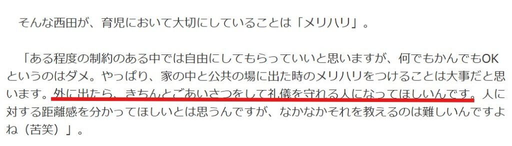 子供の名前も明かされていない状況ではあるものの、「クランクイン!」のインタビュー記事で「子育てはメリハリが大切」と語っていたことが分かりました。