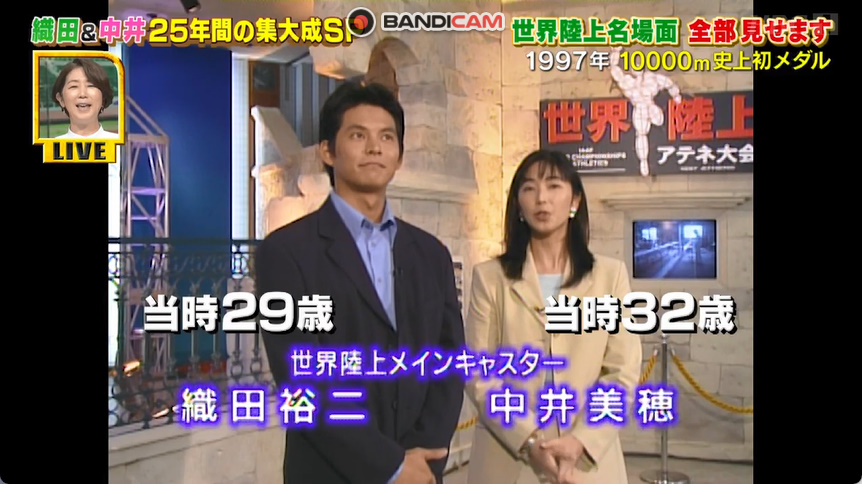 織田裕二さんが初めて世界陸上中継を担当したのは1997年のアテネ大会でしたが、女子マラソンで鈴木博美選手が金メダルを獲得するなど、日本選手の活躍が目立っていましたよね。