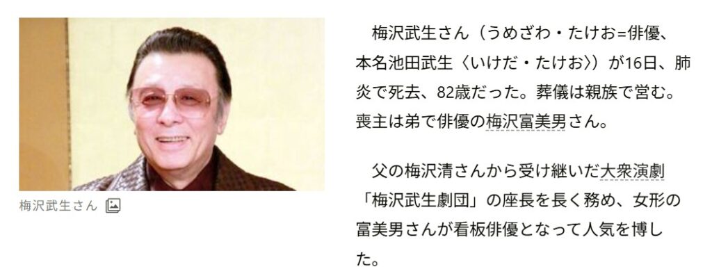 ただ、兄の訃報の中に「梅沢富美男」のワードが入っていたため、「梅沢富美男さんが亡くなった?」と勘違いした人が続出した結果、「梅沢富美男 死因」と検索されるようになりました。