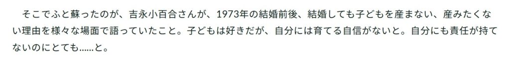 でも、吉永小百合さんは子供を産み育てる責任を果たすことができないと考えているようで、責任感の強い人物だからこそ、軽々しい気持ちで子供を授かるのはダメだという結論に至ったのかもしれません。